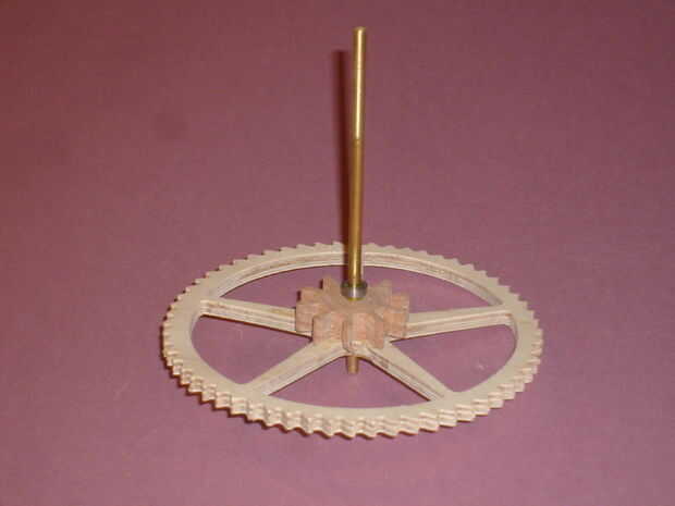 Finalmente, deslice la rueda de trinquete, prestando atención a la dirección de los dientes. Fijar el eje y el piñón con superglue.