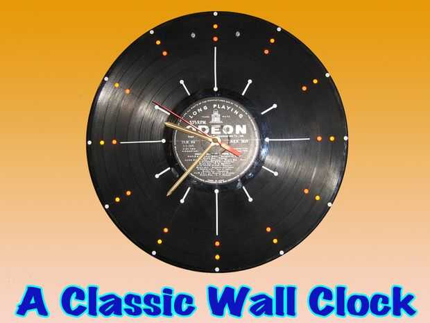 Se trata de un reloj de un viejo disco de vinilo, que era muy popular en los años 60.