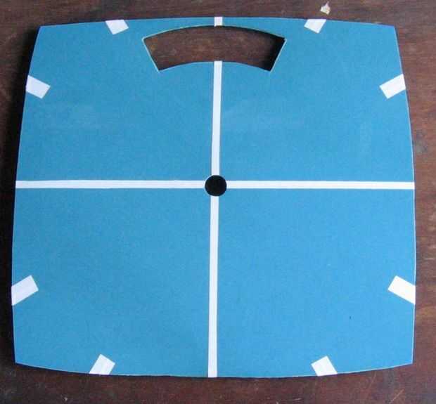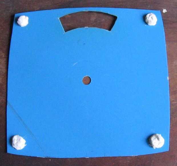 La "cara fijo" en la foto 2 se hizo de más plástico, ex una hoja A4. El cut-out en la parte superior es de tamaño para adaptarse a la cara rota, como se ve en la foto 5. Las marcas blancas fueron hechas de cinta aislante recortarse para adaptarse y pegadas con cola de contacto. Otra vez, nada crítico; utilizar lo que es fácil para usted y se verá bien.
