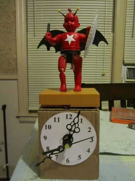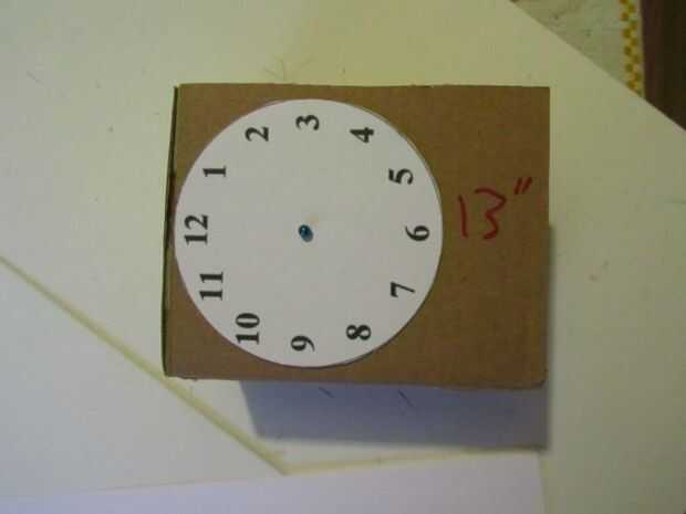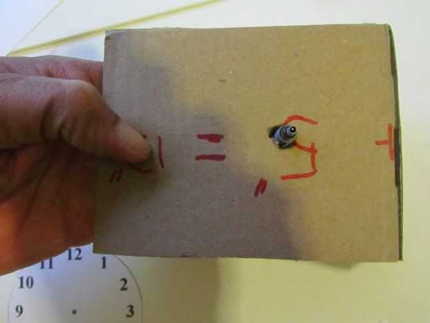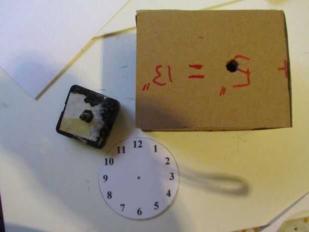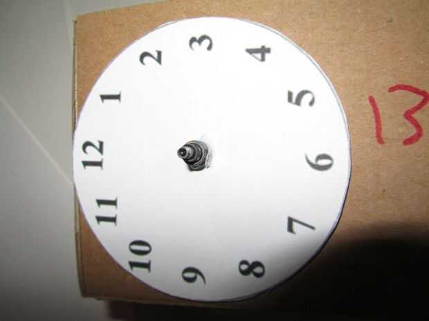 Puede utilizar un alfiler o clavo para mantener cara y empujar el agujero para el eje del reloj.