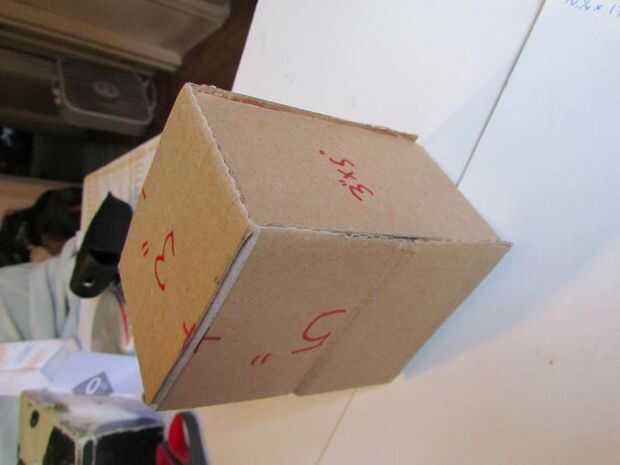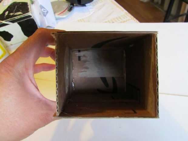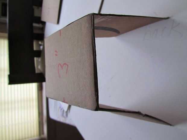 hice mi propio con piezas de desecho de cartón y caliente cola. Las dimensiones son 4" L x 3" W x 5 "D.