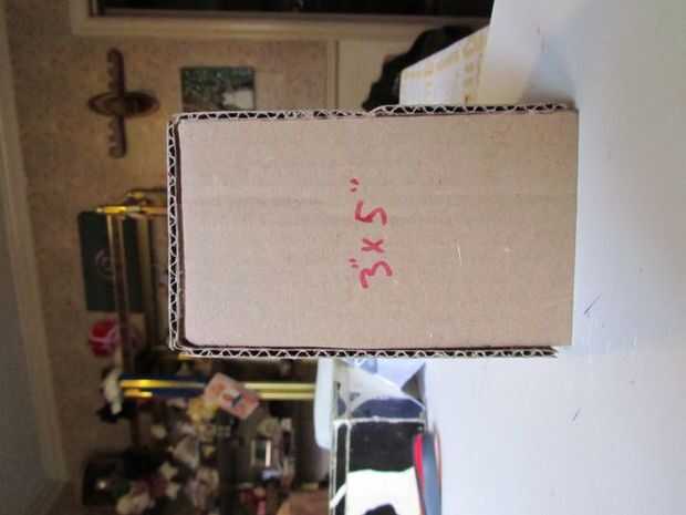Puntuación del 13 "x 4" pieza de cartón 5" de cada extremo y doblar en forma de U. Como los lados se utilizará el dos 3 x 5 piezas.