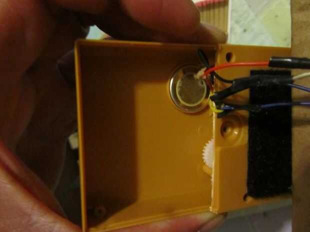 Ubique el micrófono y desconecte los cables (cables amarillo en mi caso). y el hilo a través del agujero en la cubierta inferior.