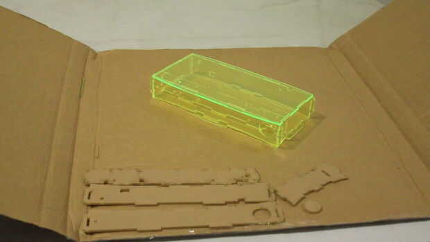Un compromiso razonable sería el tercer enfoque – para hacer una caja de paneles de acrílico que se corte por una casa de fabricación como Ponoko haciendo sistemaláser. Los ficheros de diseño podrían prepararse incluso en Corel o Inkscape (aunque se recomienda utilizar una herramienta 3D como SketchUp y explicará por qué más adelante). De esa manera sería posible hacer un cuadro como compacto como sea posible, diseñar los orificios necesarios y hacer láser para hacer el trabajo duro en vez de nosotros. También nos dará habilidades invaluables de hacer dibujos de cosas reales con la oportunidad de ver y tocar el resultado final. Y todo esto por un precio muy razonable pagar por los materiales, tiempo de mecanizado y de envío.