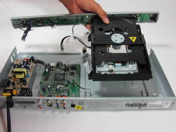 Pero bastante teoría, echemos un vistazo a un ejemplo real. Nos encontramos con un reproductor de DVD roto literalmente acostado en la calle. Prueba rápida indica eso tablero de VFD y alimentación funcional. VFD fue 16 segmentos y por lo tanto, capaz de mostrar no sólo cifras sino que personajes así. Después de unos minutos de internet fue identificado el nombre del modelo de la búsqueda: Philips DVP630