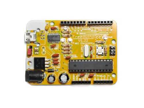 Como corazón del sistema Freeduino Junta sería probablemente una opción ideal: más que suficiente potencia computacional, abundancia de GPIOs, la cantidad de memoria de programa es más o menos justo para este tipo de proyecto, dimensiones compactas (realmente necesitamos porque el panel VFD y la fuente de alimentación son algo abultados por lo que se pretenden conseguir al mínimo tamaño posible para nuestra caja). Y finalmente, esta tabla es realmente barata.