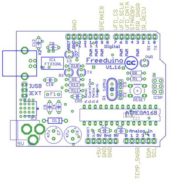 Esta es la tabla de asignación de señal entre el Freeduino tablero y los componentes restantes (véase también Esquema de DVP630):