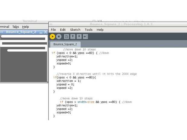 cambiar de dirección cuando la bola golpea el borde - para dibujar un cuadrado