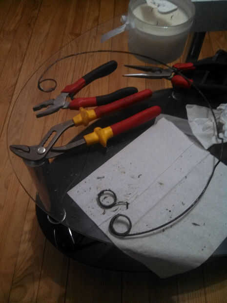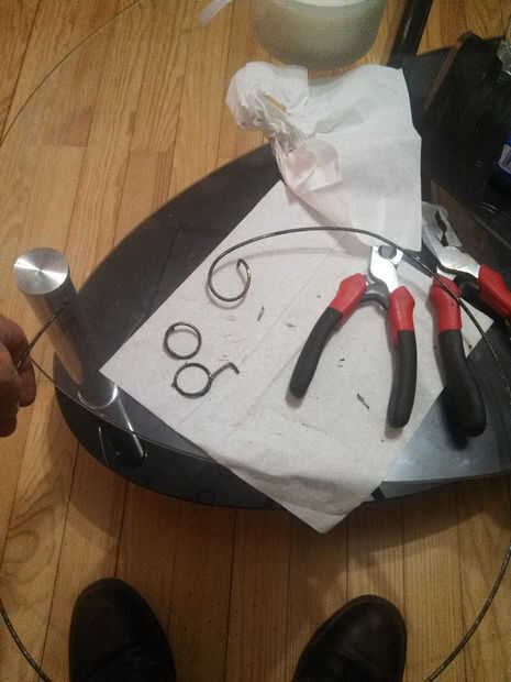 Luego, con un alicate como ésta, usted podrá forma su primavera. Cuidar el diámetro inicial de la primavera y el número de lazos del alambre, si el resorte nuevo es demasiado grueso, que el cerrojo no funcione correctamente.