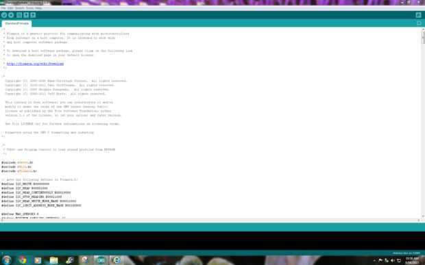 Ahora ned a código de arduino para recoger las señales que serán enviado por el proceso que son controladas por su idevice, pero llegaremos a eso más adelante. Usted tendrá que ir a archivo-ejemplos-firmatta-standardfirmatta y suba a la arduino usando el IDE de arduino.