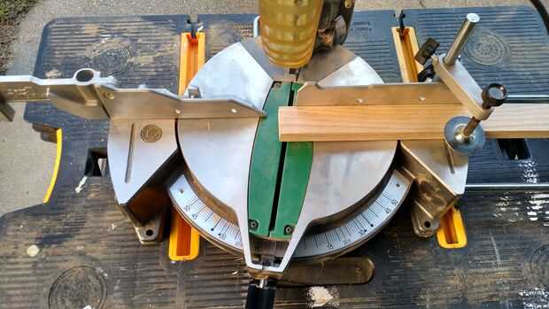Su sierra para cortar ingletes a 10 grados y corte la parte inferior de la siguiente 1 x 2 en 10 grados
