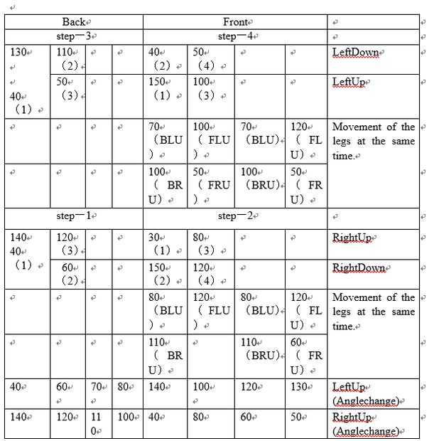 Se mueve después de 1→2→3→4→1. Entonces en cada paso, también sigue con cycle(1)→(2)→(3) pequeño. Otras piernas también se mueven cuando se mueve hacia adelante para cambiar de puesto el centro de gravedad hacia adelante.