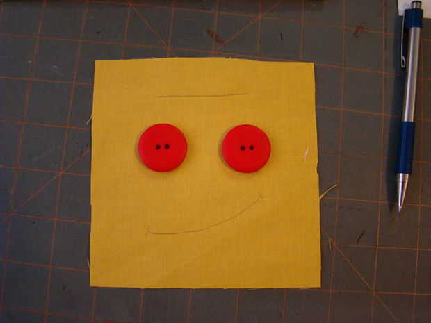 En la un Plaza cosí 2 botones para los ojos y la mano cosida en una sonrisa.