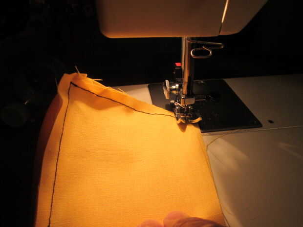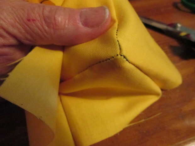Giré a la tela 90°, alineados los nuevos bordes y coser una línea recta para la siguiente costura. Repetirlo con los dos lados de la Plaza. Tenía un lado izquierda abierta, tomé, un momento y viró hacia abajo los dos extremos dejando el centro para que podría dar vuelta el cabeza lado derecho hacia fuera. Repite toda la secuencia con el cuadrado de la parte inferior.