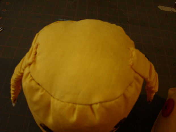 y sutura de los extremos de los brazos en la parte superior del cuerpo.