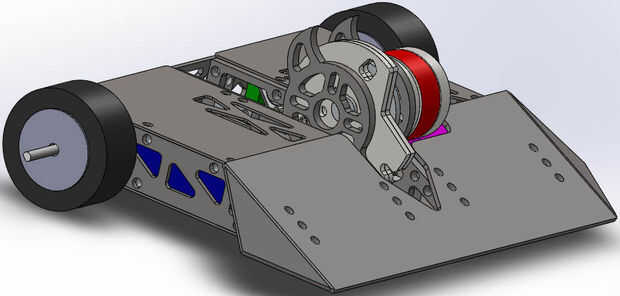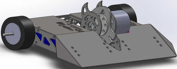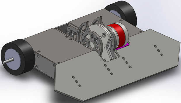 El modelo inicial de CAD sirve principalmente para crear la forma general del robot. Ésta fue la etapa en el diseño donde se determinó la mayor parte de la colocación del componente y la geometría general, tanto para el chasis y el sistema de arma.