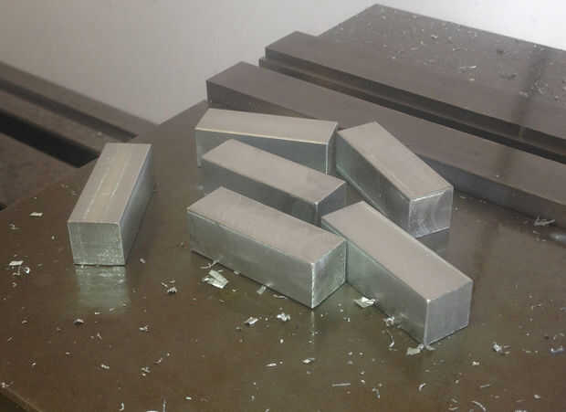 Entonces tuve que hacer uno de los bloques de nuevo. : D Bueno, que me decidí a la práctica, porque cometí un error podría han me picó más adelante un pedazo mucho más caro. Rozando uno de los extremos de una pieza izquierda había una rebaba en el borde que sacó diferentemente que los otros cortes. Cuando cumplí la parte alrededor de molino a la longitud, las rebabas formó un punto de pivote en las quijadas. Poco en el corte, las flautas helicoidales del cortador levantaron el extremo de la pieza. No tengo una imagen de lo que al final parecía, y toda la evidencia física ha sido eliminada con seguridad. :)