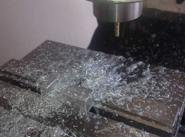 Usé un molino de extremo de 3/16" para estos cortes, que permiten para hacer pases ásperos y acabados ya que es ligeramente más estrecha que una"unidad"(la ranura más estrecha tengo que hacer). Puse un trozo en paralelos (los más altos), centrado en el vicio y retornando el eje x en hasta que el cortador era aproximadamente centrado en la ranura que necesitaría hacer. La primera pieza fue la más simple con una única ranura de 2 x 1 unidad (0.25x0.50). Llevé la tabla encima de un tú en un momento hasta que la fresa apenas marcada la superficie superior y pone a cero el dial (profundidad de corte real será el dial de lectura más algo menos una milésima parte). Eje RPM encuentra (máxima velocidad en este caso :)), acaba de tomar pasa fácil a.050,.100,.150,.200,.245 y.253 con el eje y. 5 pasadas de desbaste y un rematador. Cada paso es tan corto que apenas toma cualquier tiempo en todo.