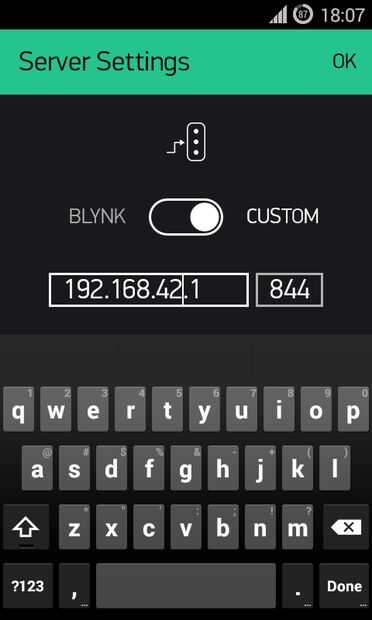 Si utilizas tu propio servidor local hacen que la configuración del servidor se establece en personalizado y proporcionar dirección IP de su Edison.