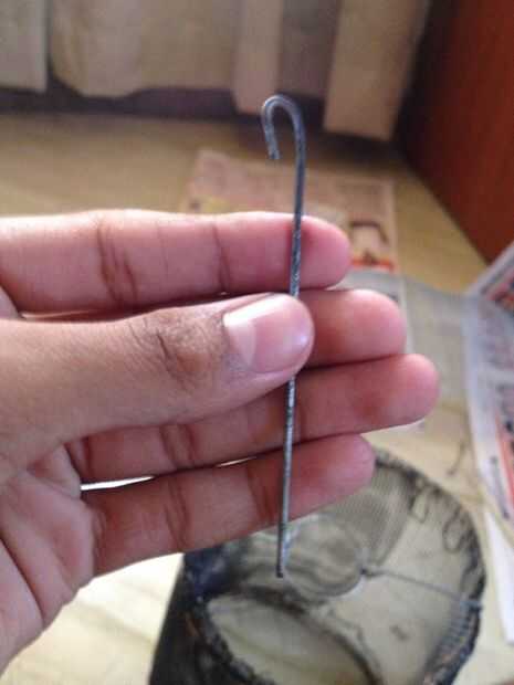 4. Corte 4 pedazos de alambre de acero de longitud más grande y hacer un gancho en uno de los lados.