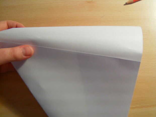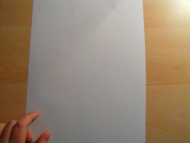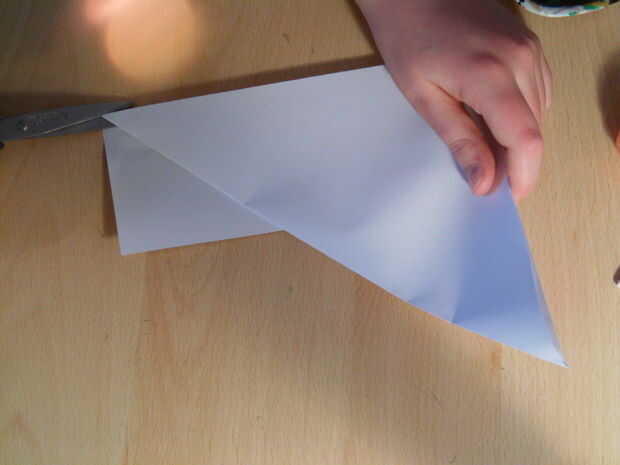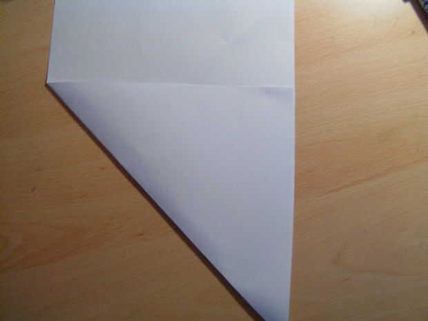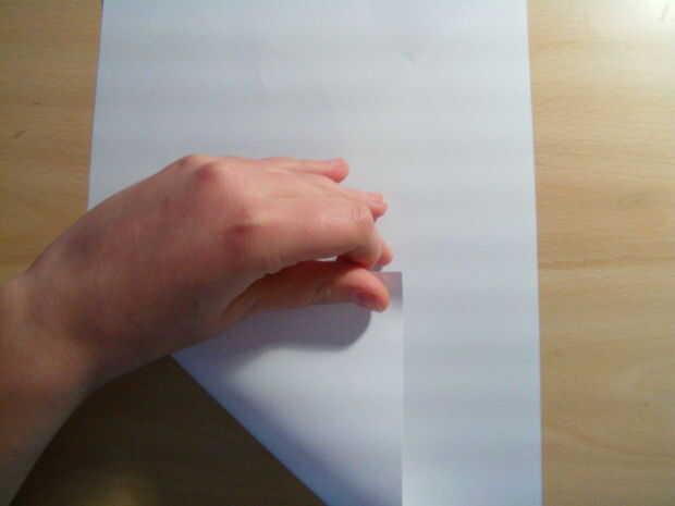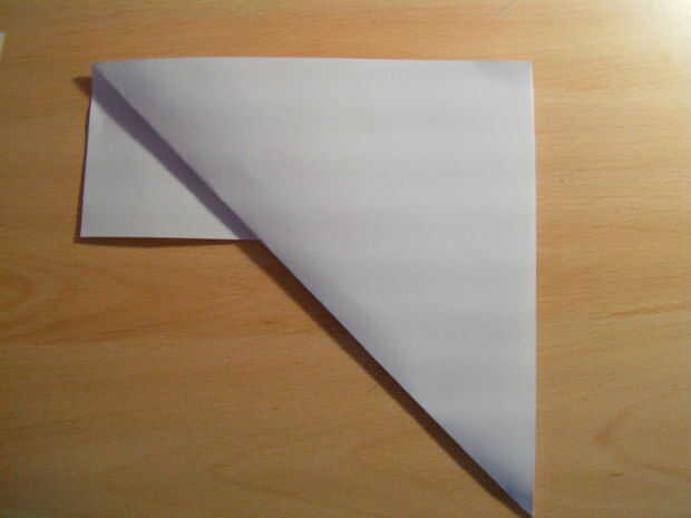 Ahora tenemos que hacer nuestra pieza rectangular de papel en un cuadrado. Para ello simplemente doblando de una esquina del rectángulo y darle en el lado del papel. Luego cortar el exceso. Esto también claramente crea uno de los pliegues también!