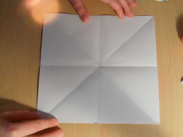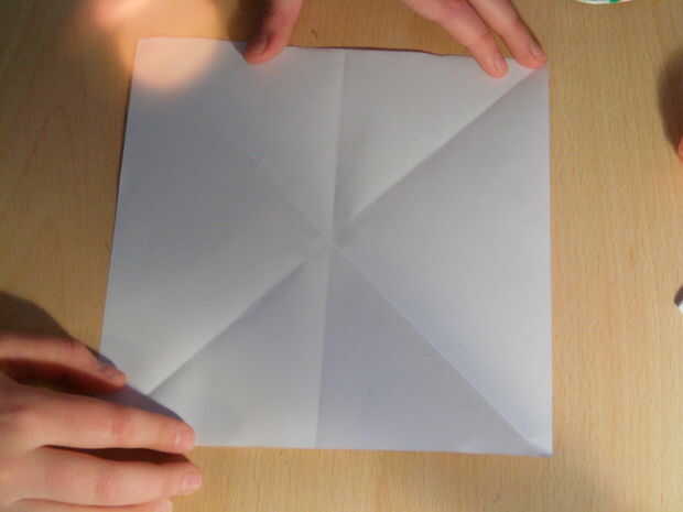 Por lo que ahora necesita doblar diagonalmente dos veces, entonces una vez arriba y otra abajo. Esto crea un patrón de estrella!