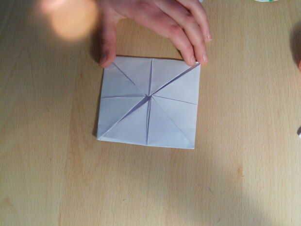 Ahora, número 1, 2, 3 y 4! Asegúrese de que están apuntando hacia el exterior para que al abrir lo que se apunta en.