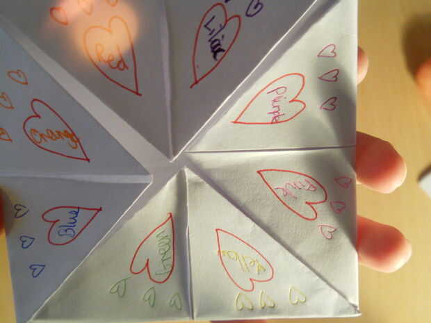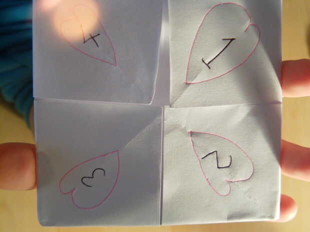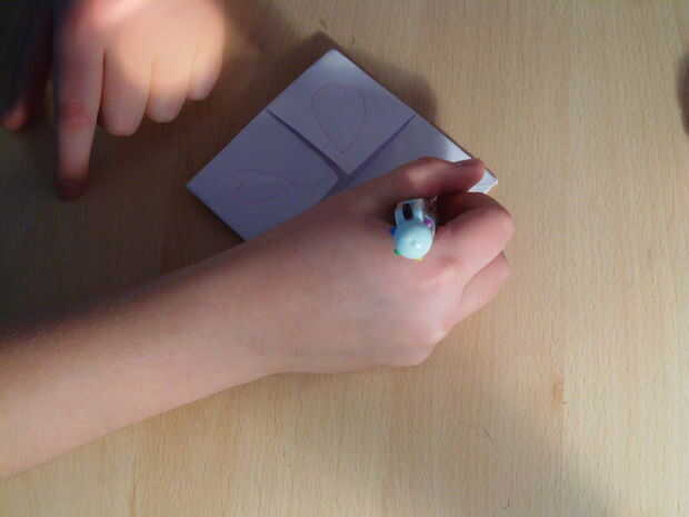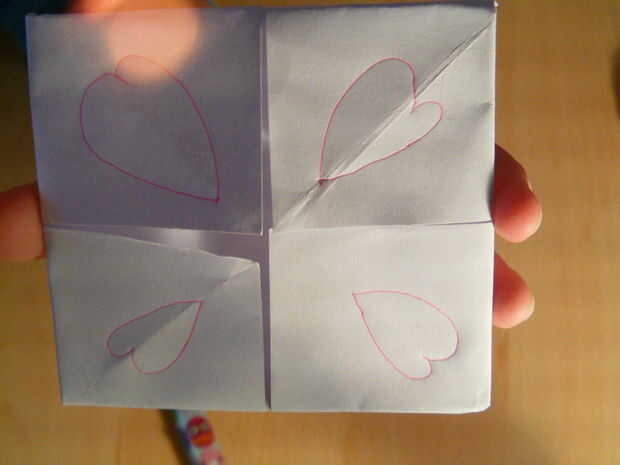 Tomar el lápiz y dibujar 4 corazones de color rosa grandes en la parte exterior de su adivino!