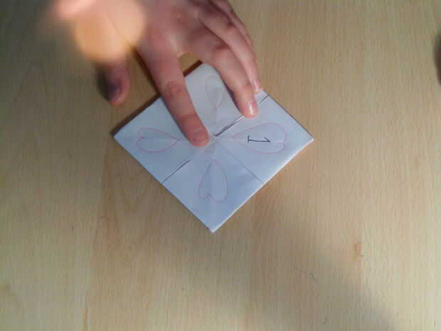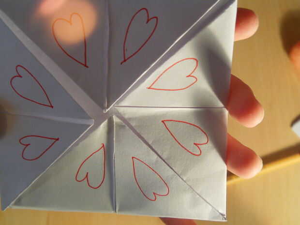 Ahora Dale la vuelta y 8 corazones rojos en el interior. Añadir otro color en el centro y dibujar eso corazones pequeños de color alrededor del corazón más grande!
