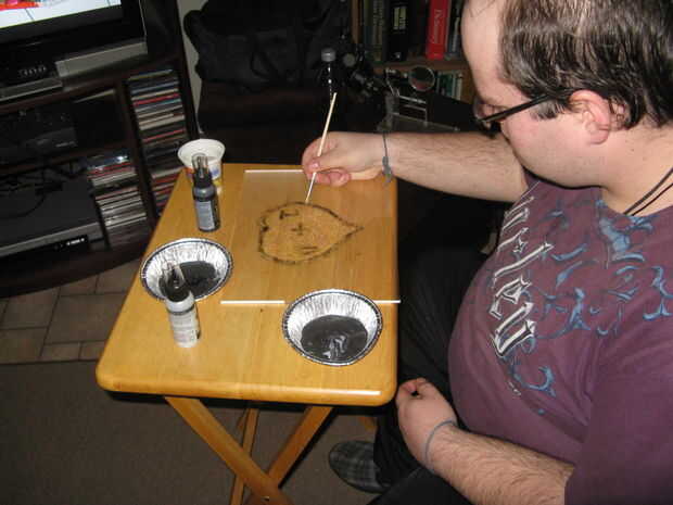 La parte de atrás del plástico óptico es áspero esto ayuda a la memoria de la pintura y los destellos se encienden cuando el plástico se llena con la luz.