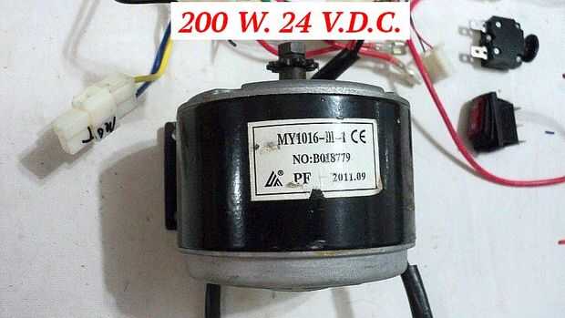 Después de determinar que los scooters eran más allá de la reparación económica, he quitado el eléctricos y sistemas de impulsión de ambos. Ahora tengo un trabajo pesado pulso modulación D.C. control de velocidad, encendido / apagado, interruptor térmico y un motor de agradable 200 vatios 24 voltios d.c. conjunto de cada uno. Solo motor fue de interés para esta build, por lo que el resto será dejado de lado para algún proyecto futuro.