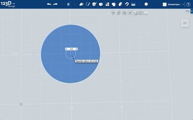 Una vez seleccionado, haga clic en cualquier lugar en el plano de trabajo vacía para especificar que desea iniciar, y le pedirá que haga clic una vez para establecer el punto de centro y otra vez para definir la longitud del radio. RADIO, diámetro, por lo que ponemos en. 75" o 3/4 de pulgada para hacer 1 1/2" de diámetro.