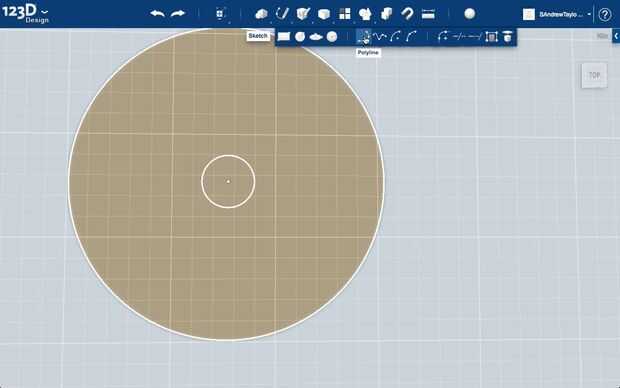 Con un 1 1/2" círculo define la huella de la perilla, puede pensar lik estaban mirándolo desde arriba. Sé que el post es 1/4" de diámetro (ignorando la parte plana un poco), usé el bosquejo del círculo otra vez para crear otro círculo con el punto central mismo como otro, sólo que esta vez con una 1/8" (. 125") radio.