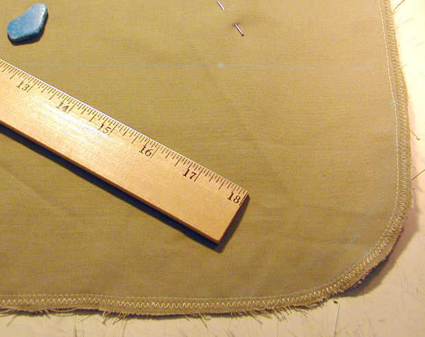 Este tejido particular es un tejido grueso que batallas fácilmente. Por lo tanto está respaldado con un pato de tejido más apretado, que es la tela usada para los bolsillos.