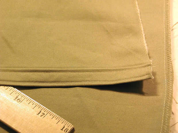 El borde superior es zig-llegamos, dio la vuelta, presionado y dobladillado, luego una segunda línea de la costura puesto en 1/8" del borde para mantener el dobladillo acostado. Dependiendo de la tela, puede suya dos veces y encierran completamente el borde de la tela.