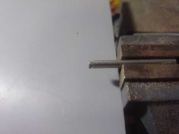 Necesitamos alguna forma de utilizar las piezas de metal que ya tenemos como electrodos para nuestra sonda por lo que los adaptaremos, simplemente hacen un corte con la herramienta de la moto en el bar metálico cerca del final de la misma, sólo tenga cuidado de no para cortar a través.