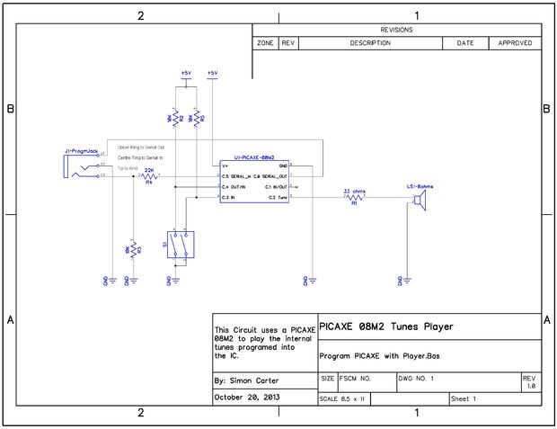 Paso 2: PICAXE Tune jugador diagrama del circuito