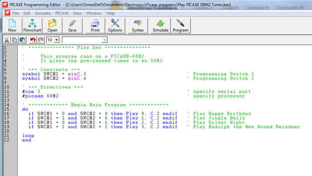 Si SWCH1 = 1 y SWCH2 = 0 then Play 1, C.2 endif ' jugar Jingle Bells