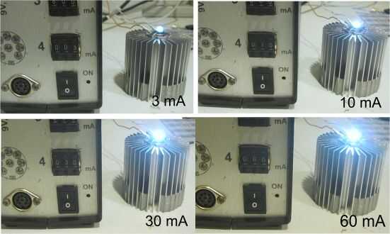Esta prueba con un LED de alta potencia con diversas corrientes.