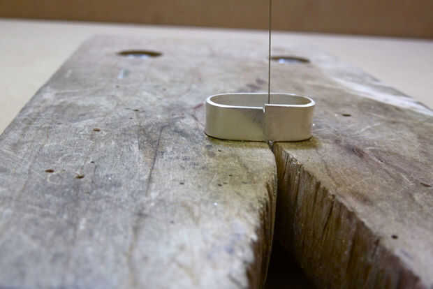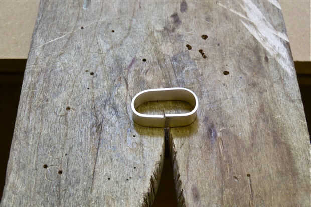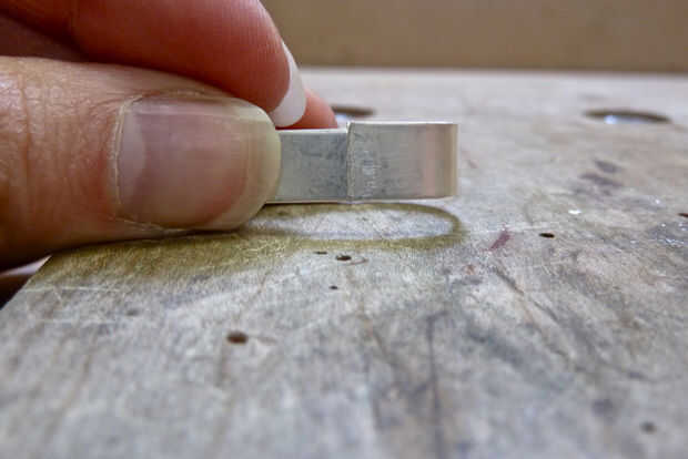 Como en todas las cosas, puede empeorar antes de que llegue mejor. Si se corta en un ángulo se corta una cuña hacia fuera dando por resultado un espacio más grande, si esto sucede que los dos bordes común necesitará mover hacia atrás juntos antes de intentar cortar con la sierra otra vez. Puede tomar una vez o 20 veces para que este bien. Cuantas más veces vayas a través de la costura más pequeño será el anillo; no te preocupes acerca de esto, seremos martillo texturizado el anillo que se extenderá hasta el tamaño correcto. Es mejor terminar con un anillo demasiado pequeño pero con ningún espacio. Este es su primer anillo y se tarda varios intentos para perfeccionarlo. Sea paciente y usted tendrá éxito.