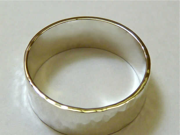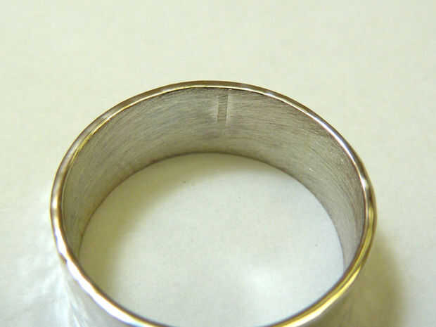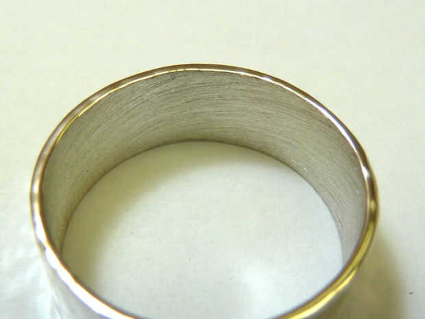 A menudo oigo decir a mis alumnos "pero es sólo el interior". Se trata de una mala manera de pensar sobre su trabajo. Joyas es una escultura tridimensional que se sentía y vista desde todos los ángulos. La diferencia entre una masa producido barato pieza de joyería y una pieza artesanal hecha con cariño por un artesano está en el nivel de acabado. El interior del anillo es la superficie más importante terminar bien, como que va estar tocando la piel. Si el interior del anillo es con marcas de esmeril y no dado un pulimento brillante que probablemente causar irritación y no es cómodo de llevar. Hay veces cuando visión artística debe anular las decisiones de cuestiones técnicas, pero en mi opinión que este no es uno de ellos.