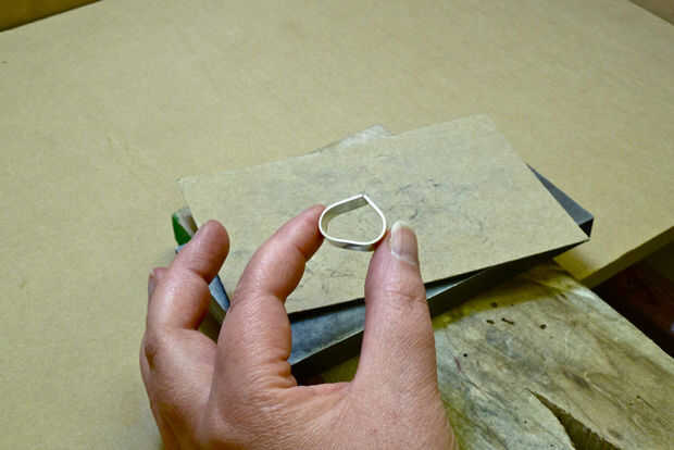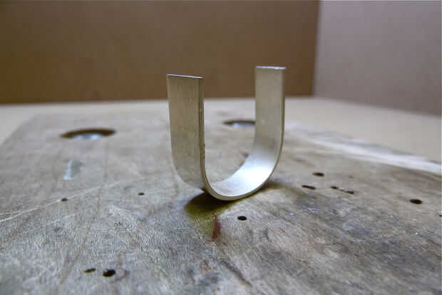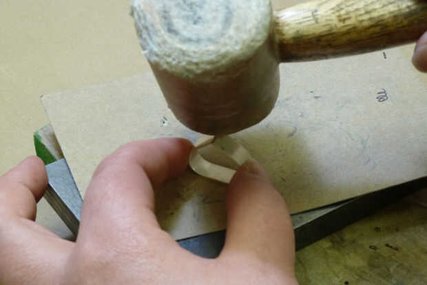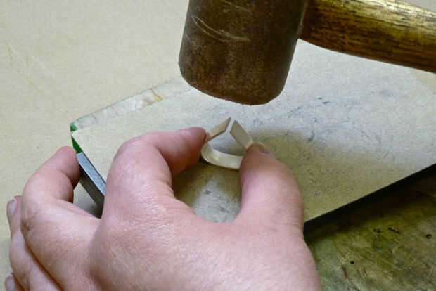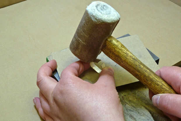 Durante este proceso el metal puede "comportarse" o no. Si el metal se comporta, todo lo hará como se describe. Más probable es que el metal se cambio y giro y no como se dice. Al aprender algo nuevo, se comienza a construir una "biblioteca" de información. Golpear el metal y ver qué, golpeó otra vez y seguir observando, cómo aprendes. Hay muy poco que puede hacer en este punto que no se pueden corregir, por lo que no tenga miedo de probar cosas. La mejor manera de avanzar rápidamente es hacer algo y ver qué pasa. En por lo menos usted aprenderá lo que no funciona, que es tan importante como aprender lo que hace. Usar el martillo, los dedos y si es necesario alicates con punta suaves para alinear las dos juntas. Si el metal empieza a trabajo endurecido y le cuesta moverlo, volver a recocer el metal y continuar.