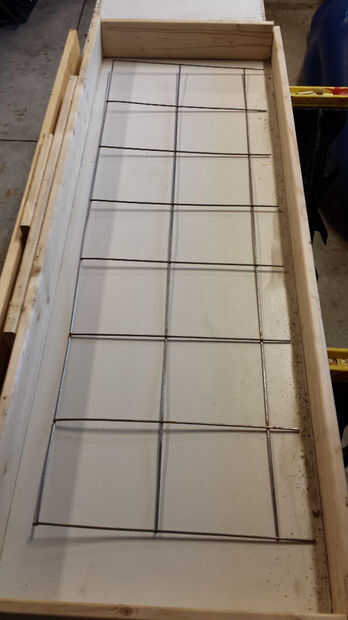 Primero una forma se hace, idealmente de melamina para que todas las partes será suave. Para el Banco usé melamina como la parte inferior de la forma y la chatarra de 1 x 3 para hacer los lados (me quedo sin melamina). Corrió una gota de sellador de silicona a lo largo de las esquinas para que la mesa más habría redondeado esquinas y para prevenir y hormigón escaparse hacia fuera. A continuación corté refuerzo de alambre de 1 pulgada más pequeña que las dimensiones de la forma utilizando una amoladora.