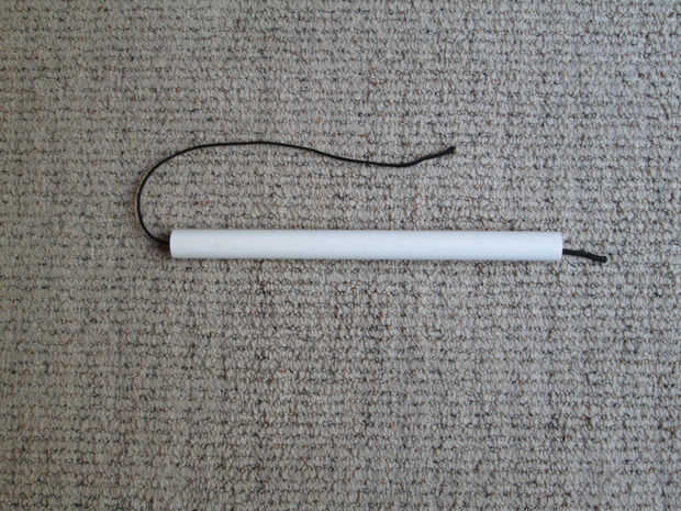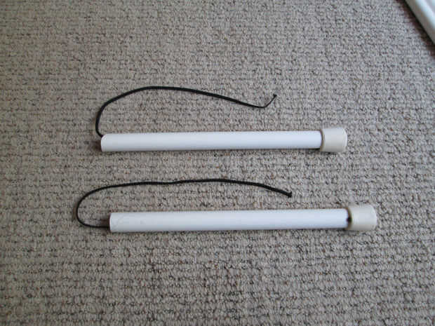 Deslice uno de caucho puntas de las patas sobre el final y asegurar el elástico entre la punta y la sección de tubo de PVC. Observe el extremo del elástico ligeramente sobresaliendo de la punta.