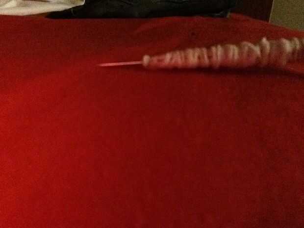 Cuidadosamente coloque el pasador de la costura en el extremo del dardo y luego otra vez bien cinta hasta el final y se acaban.