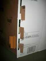 Mesa ligero hecho con piezas de tabla de Home Depot mediante 5 pequeñas Home Depot cajas de cartón, la yarda del palillo y cinta adhesiva. Para uso temporal; nada a largo plazo.Paso 1: Armar cajas 4 toma de Home Depot cajas y ponerlos juntos. Dobla