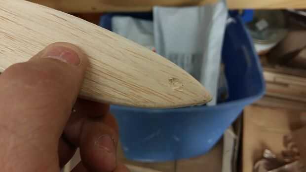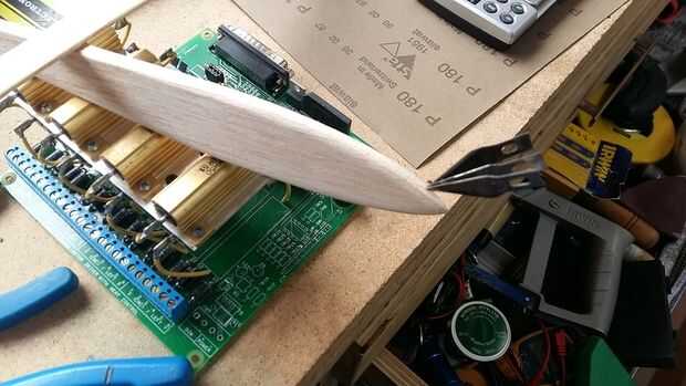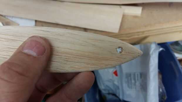 La vela se realiza, para equilibrarlo, tomé balsa hojas agregarlos hasta nariz pesada. un avión debe equilibrar en aproximadamente el 30% de la cuerda del ala (distancia de borde a borde de pruebas). Taladré mm 4 agujeros en la nariz pesó 3 láminas y utiliza alguna soldadura capilar del mismo peso y un poco más a retener. Esto entonces se funde en el agujero. Suavemente es martillado plana asegurándolo en lugar.