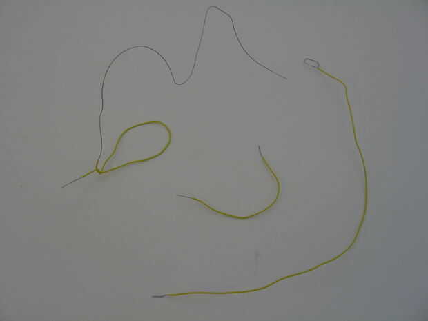 A continuación, se dobla los cables. En la 14" pieza, hacer un lazo en el extremo que se desnuda más. Luego de las 16" piezas, la parte que todavía está aislada del lazo. Con el resto del alambre, hacer un diseño de zig-zag. Compruebe el cuadro a continuación para ver lo que debe.