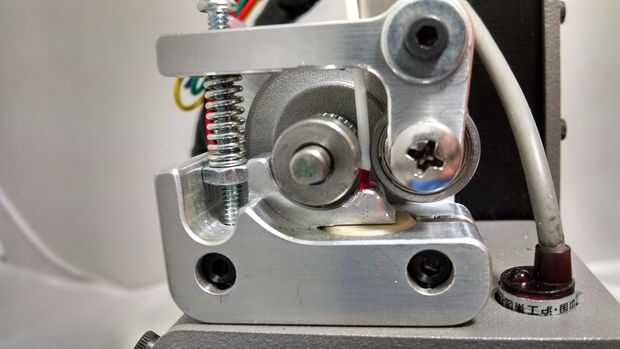 Empiezo la impresión con un color. Mientras que eso sección representativa (el cilindro) está imprimiendo, enderece el filamento para mi siguiente color. También aseguro que tiene un corte limpio y perpendicular. Cuando el cilindro de las transiciones a la sección estrella, yo inmediatamente clip el filamento y alimentar el nuevo, enderezado en. Un poco difícil mantener el filamento nuevo en su lugar hasta que la máquina apretones. Alineación también es crítica o el nuevo se deslizan el viejo y mermelada o dejan de alimentarse.