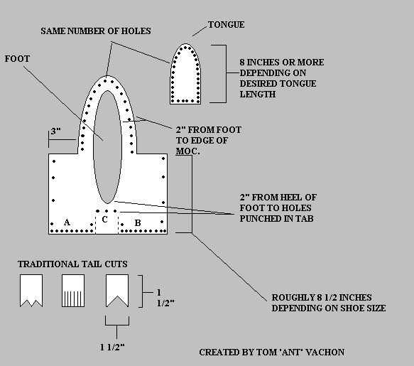 4. a partir de ahí se puede medir la cola que se extenderá desde la parte posterior de la moc. Como se muestra en el diagrama, debe ser aproximadamente 1,5 pulgadas de ancho por 1,5 pulgadas de largo. Hay algunos diseños de cola en el patrón.